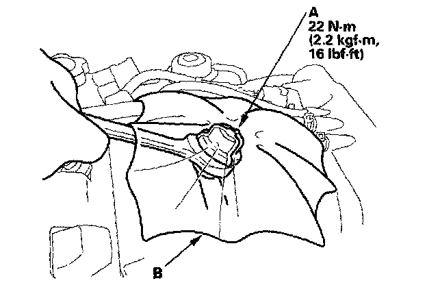 6. Place a rag or shop towel (B) over the fuel pulsation damper.