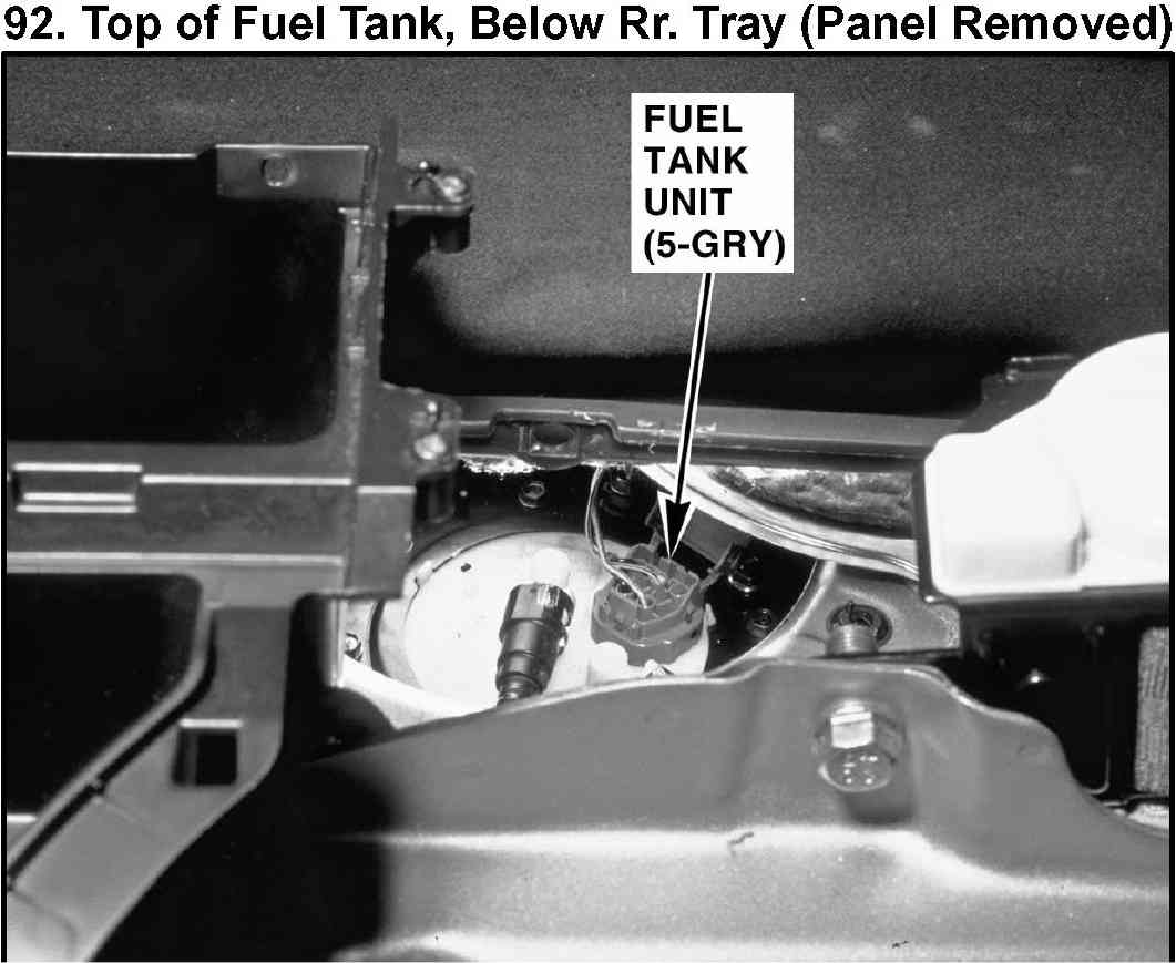 92. Top of Fuel Tank, Below Rr. Tray (Panel Removed):