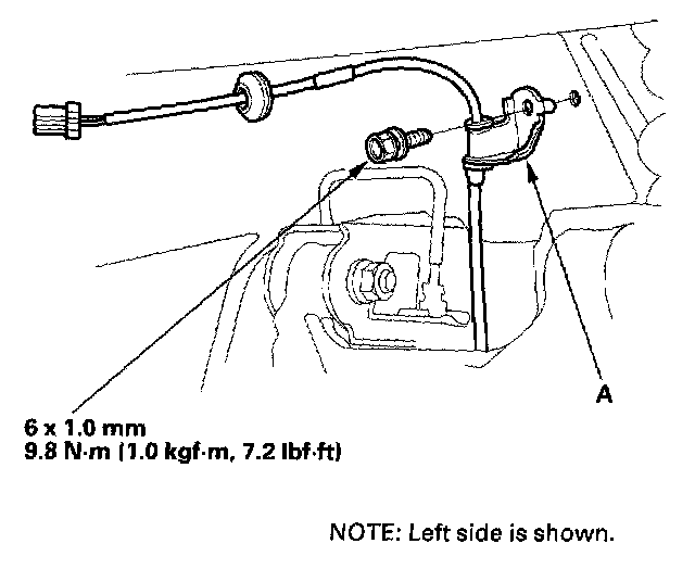 13. Disconnect both parking brake cables (A), and move them out of the way.