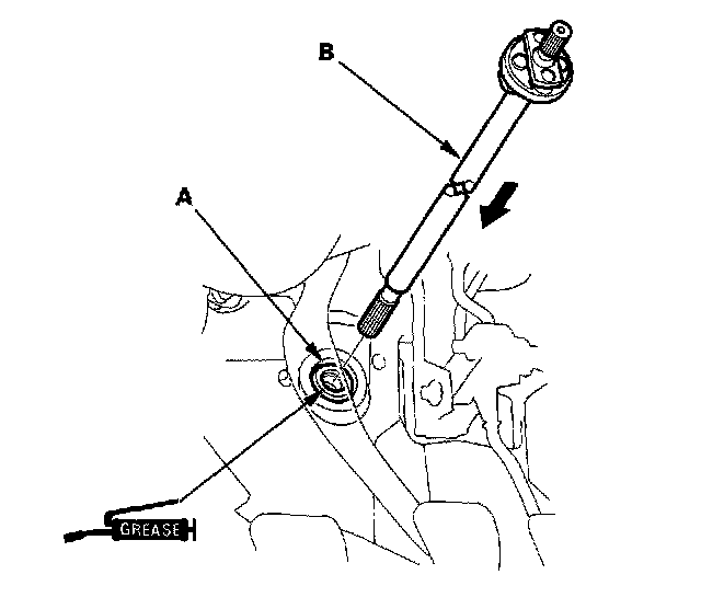 5. Remove the steering joint (B) from steering shaft.