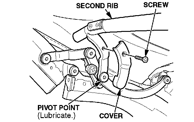 3. Remove the covers from the left and right pivot point of the second rib, and lubricate the pivot points with white lithium grease spray.