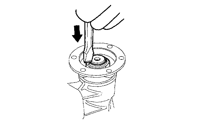 5. Remove the needle bearing (A) using a commercially available bearing puller (B) as shown.