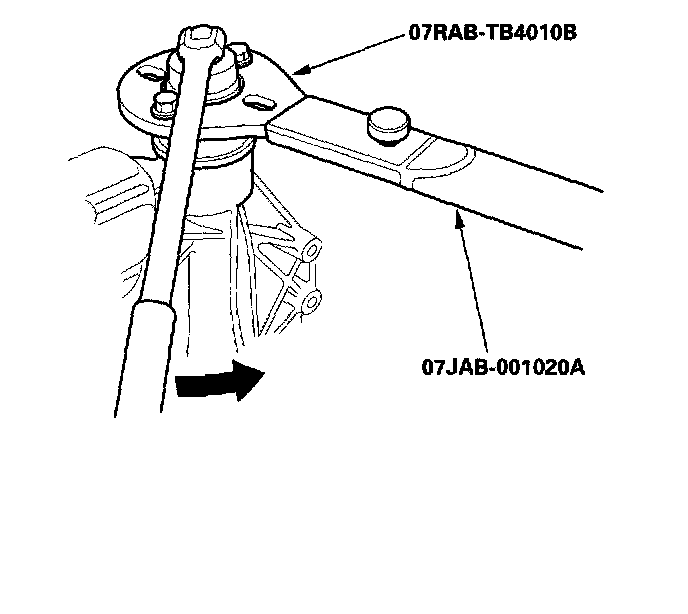 3. Install the special tool onto the mainshaft spline, and loosen the 29 mm locknut (left-hand threads).