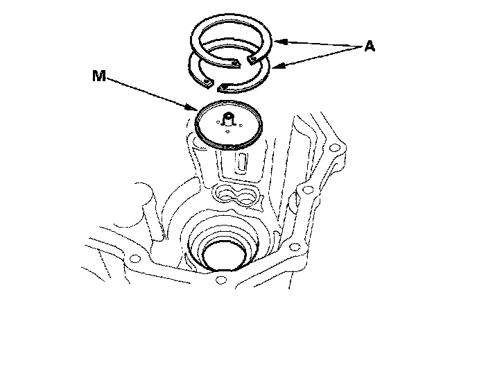 15. Remove the 82 mm shim(s) (A) and the oil guide plate M.