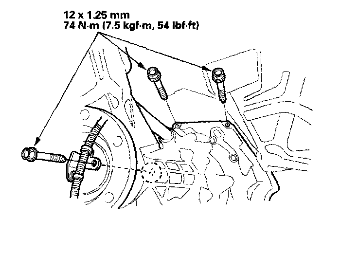 6. Install the three upper transmission mounting bolts.