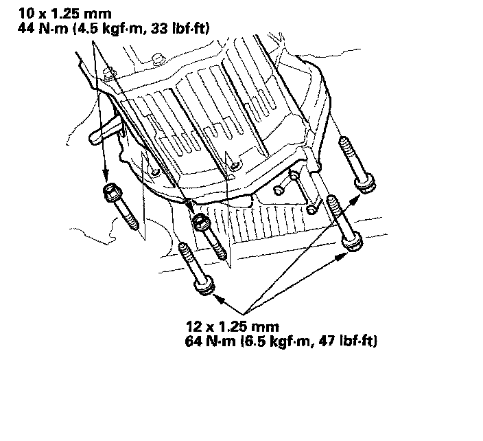 11. Install the five lower transmission mounting bolts.