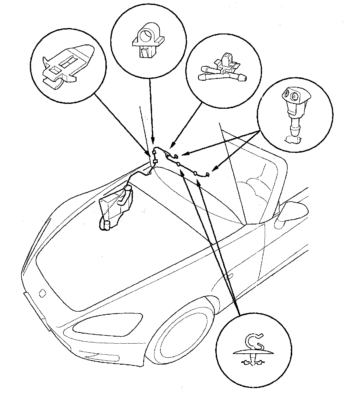 3. Install in the reverse order of removal. Take care not to pinch the washer tube. Check the windshield washer operation.