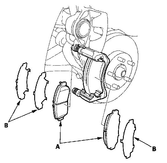 If you are reusing the brake pads, always reinstall the brake pads in their original positions to prevent a momentary loss of braking efficiency.