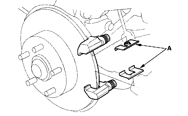 5. Remove the pad retainers (A).