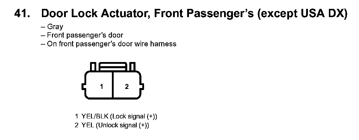 41. Door Lock Actuator, Front Passenger's (except USA DX):