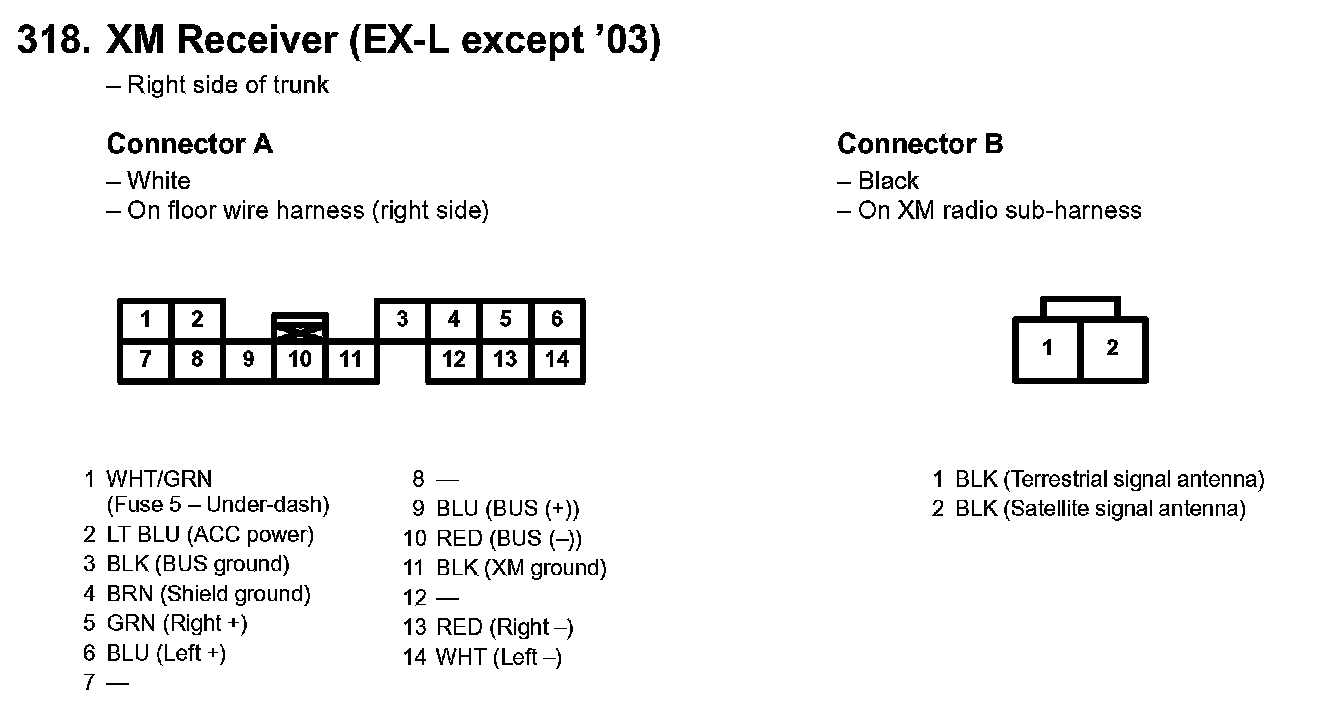 318. XM Receiver (EX-L Except '03):