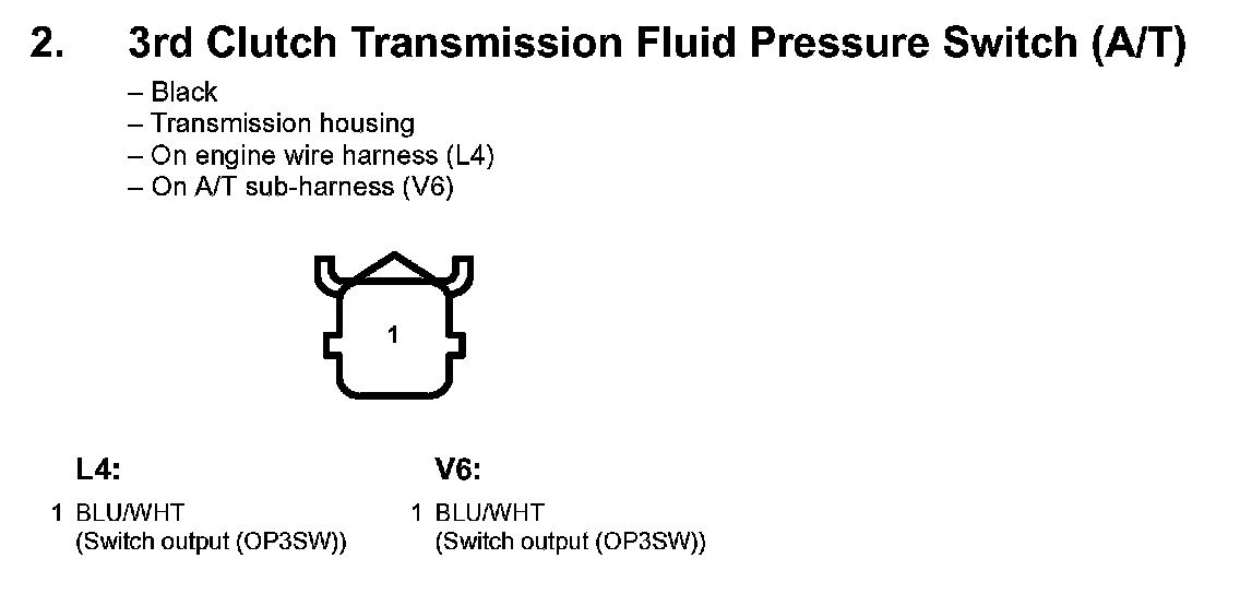 2. 3rd Clutch Transmission Fluid Pressure Switch (A/T):