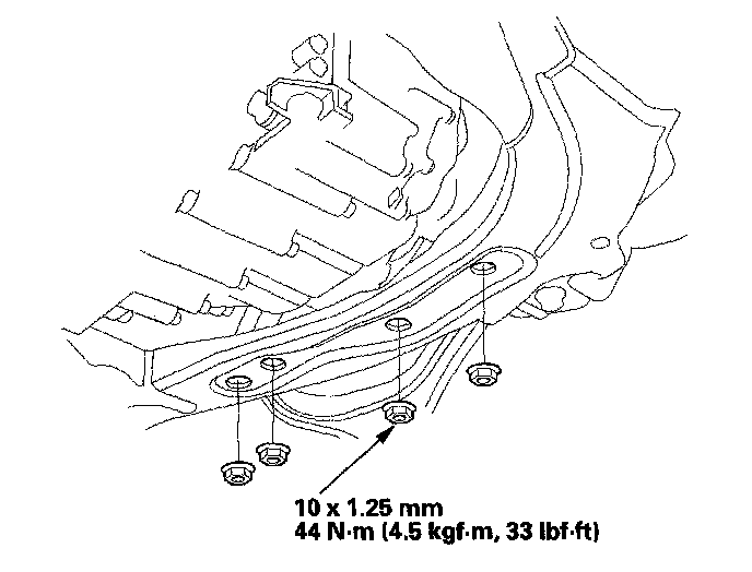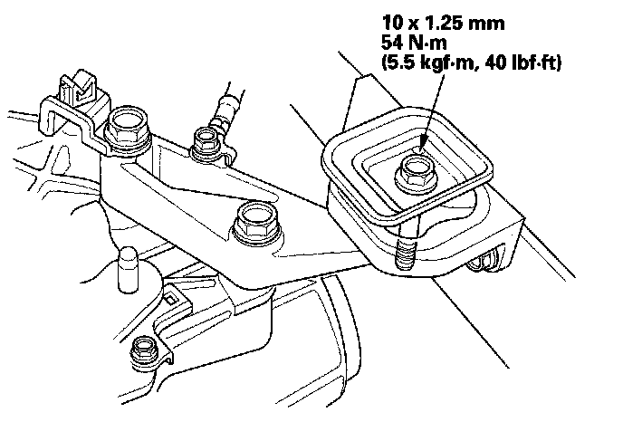 13. Tighten the nuts securing the transmission lower front mount and transmission lower rear mount.
