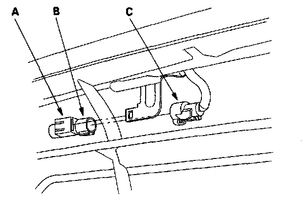 Outside Air Temperature Sensor Replacement1. Lift the tab (A) to release the lock, and remove the outside air temperature sensor (B) from the back of the front bumper beam. Disconnect the 2P connector (C) from the outside air temperature sensor.