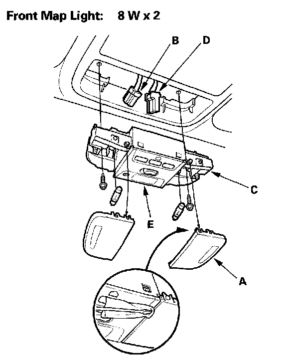 4. Disconnect the 8P connector (D) from the ambient light (E).