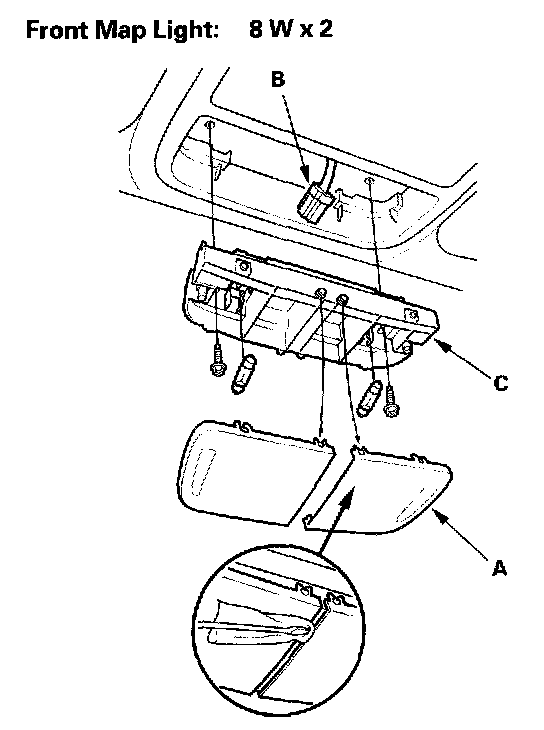 1. Carefully pry off the lens (A) with a small screwdriver.