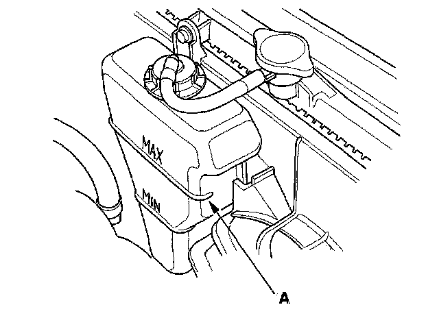 6. Fill the reserve tank to the MAX mark (A) with Honda Antifreeze/Coolant Type 2 (P/N OL999-9001).
