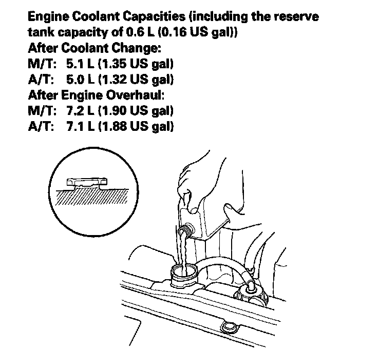 7. Pour Honda Antifreeze/Coolant Type 2 into the radiator up to the base of the filler neck.