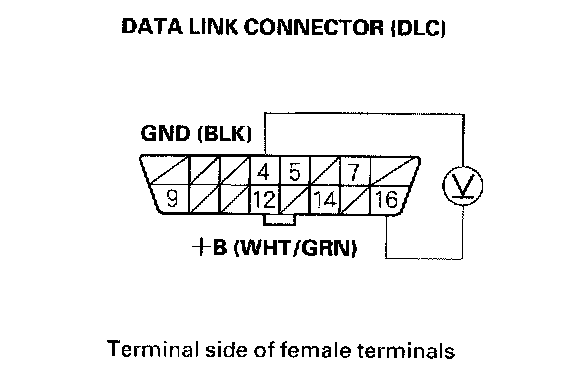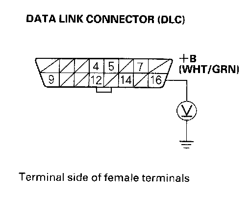 1. Measure voltage between DLC terminal No.16 and body ground.