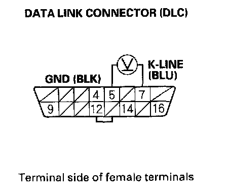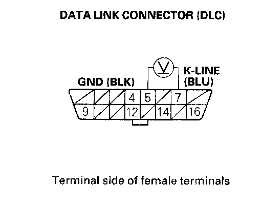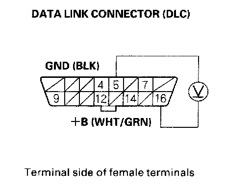 15. Measure voltage between DLC terminals No.5 and No.7.