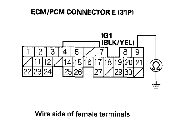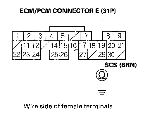 16. Check for continuity between ECM/PCM connector terminal E29 and body ground.