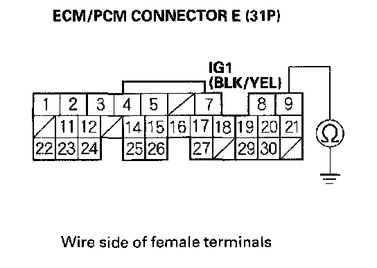 35. Check for continuity between ECM/PCM connector terminal E9 and body ground.