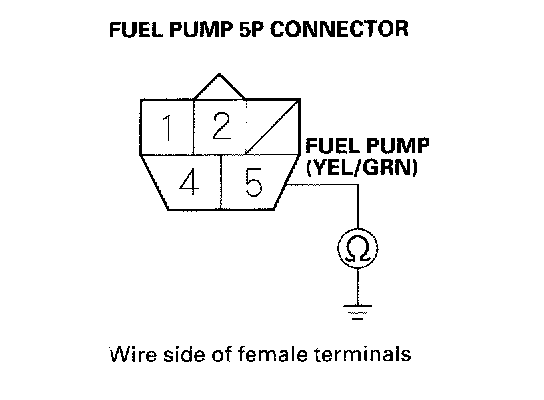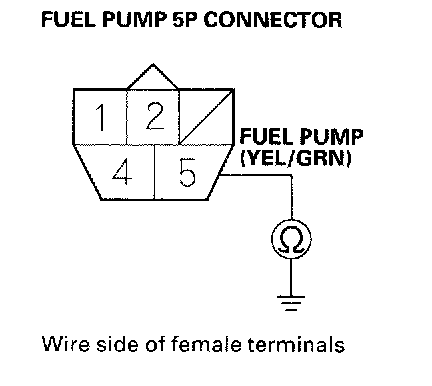 41. Check for continuity between fuel pump 5P connector terminal No.5 and body ground.