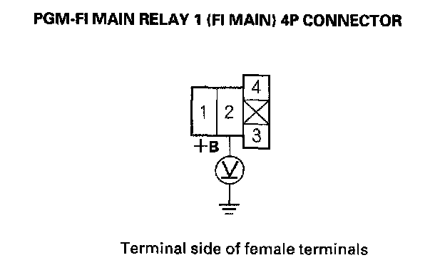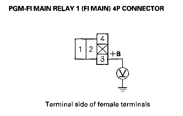 59. Measure voltage between PGM-FI main relay 1 4P connector terminal No.2 and body ground.
