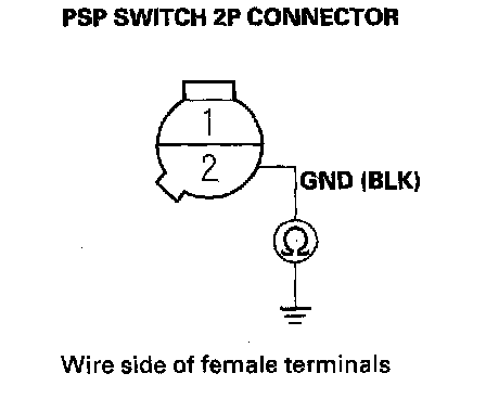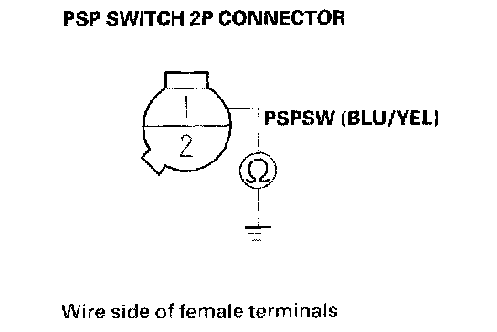 11. Check for continuity between PSP switch 2P connector terminal No.1 and body ground.