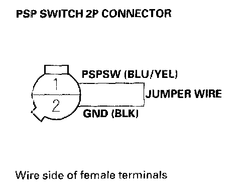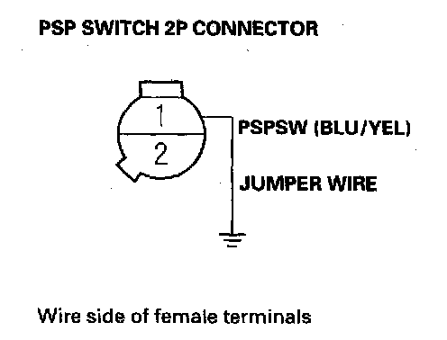 17. Remove the jumper wire from the PSP switch 2P connector.