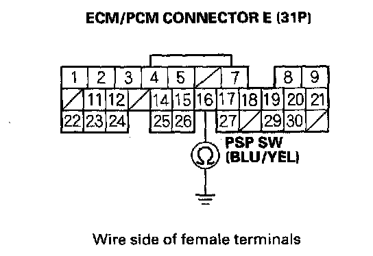 20. Connect PSP switch 2P connector terminal No.1 to body ground with a jumper wire.