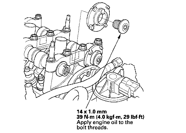 2. Hold the camshaft with an open-end wrench, then loosen the bolt.