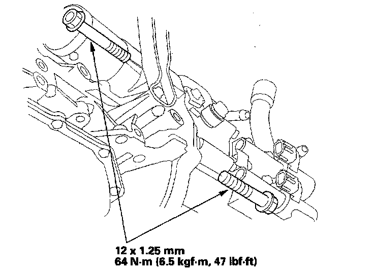 7. Install the upper transmission housing mounting bolts.
