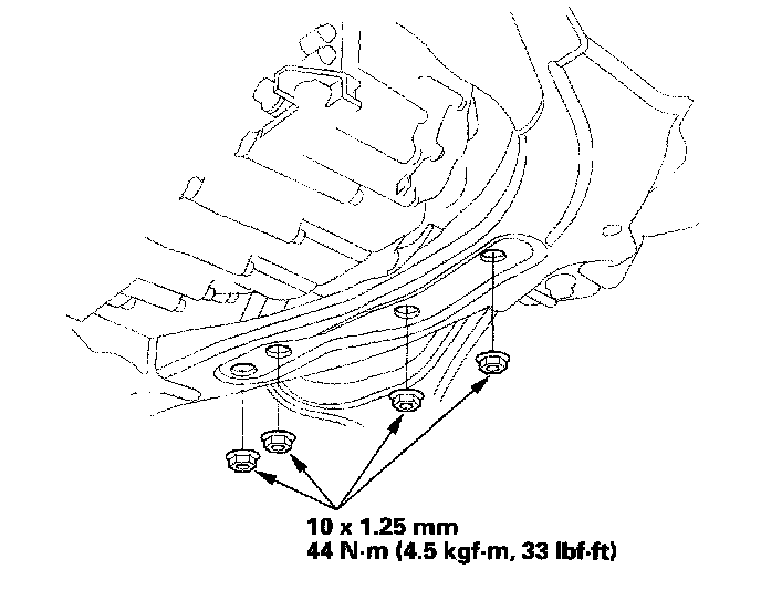 22. Install the transmission lower mount nuts.