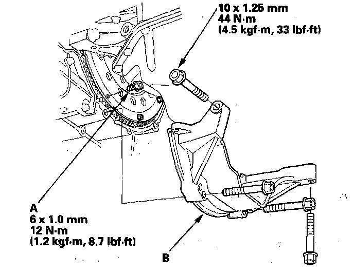 26. Install the engine stiffener (B).
