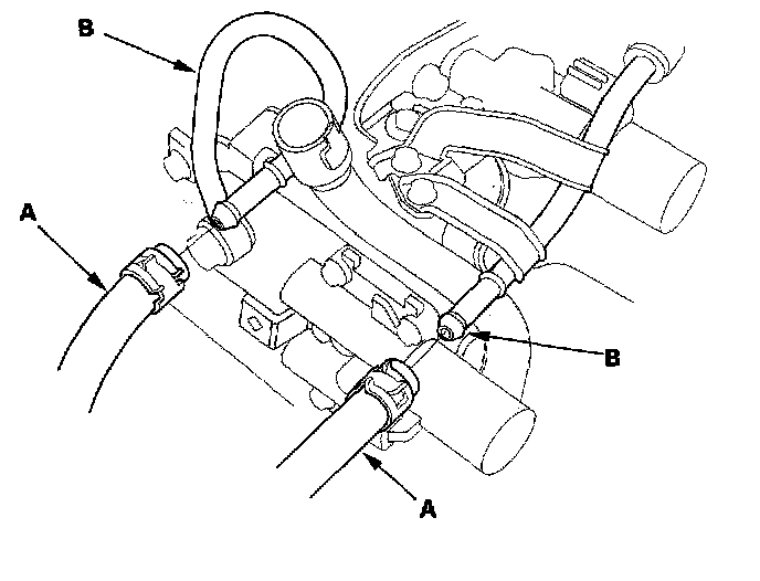 41. Connect the ATF cooler hoses (A) to the ATF cooler lines (B), and secure the hoses with the clips.