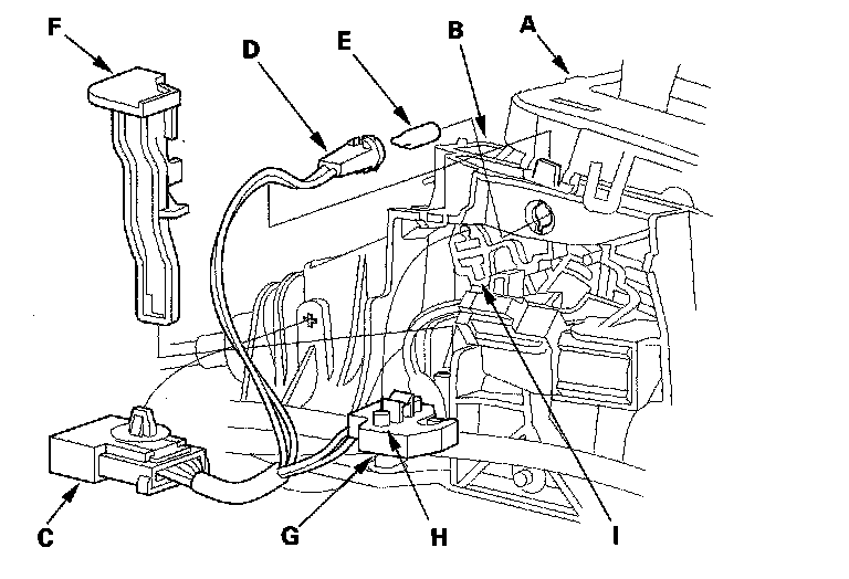 6. Remove the park pin switch, and install the new switch (G) by aligning the tabs (H) with the slots (I).