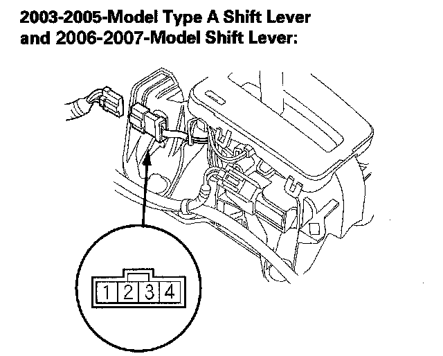 5. If the park pin switch is faulty, replace it (type A shift lever) or replace the shift lever bracket base (type B shift lever). The park pin switch of the type B shift lever is not available separately.