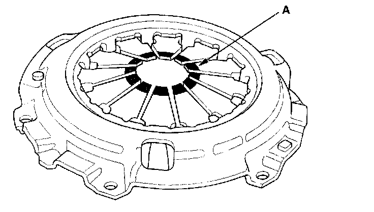 4. Inspect the fingers of the diaphragm spring (A) for wear at the release bearing contact area.