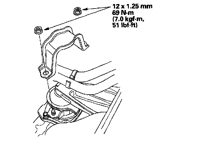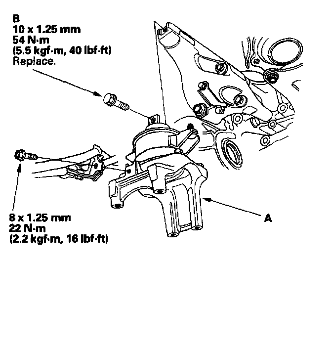 3. Install the transmission lower front mount (A) and transmission lower rear mount (B).