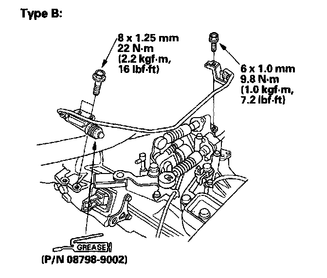 44. Apply super high tamp urea grease (P/N 08798-9002) to the end of the cylinder rod. Install the slave cylinder. Take care not to bend the clutch line.