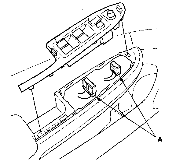 2. Disconnect the power mirror and power window switch connectors (A).