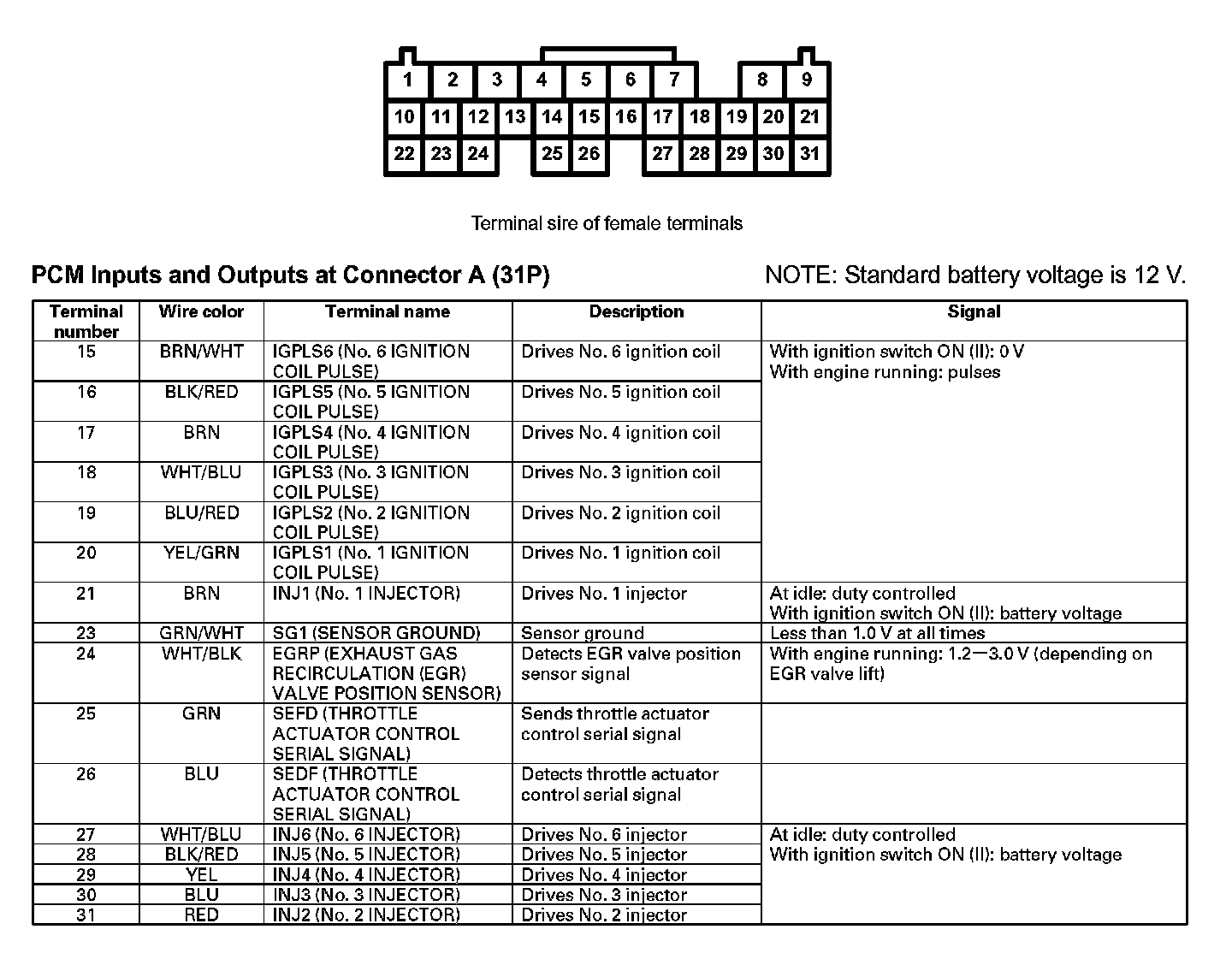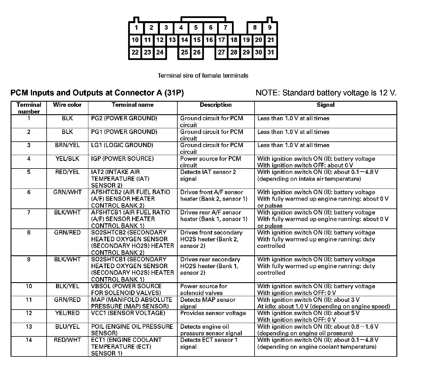 PCM Inputs And Outputs At Connector A (31P) Part 1: