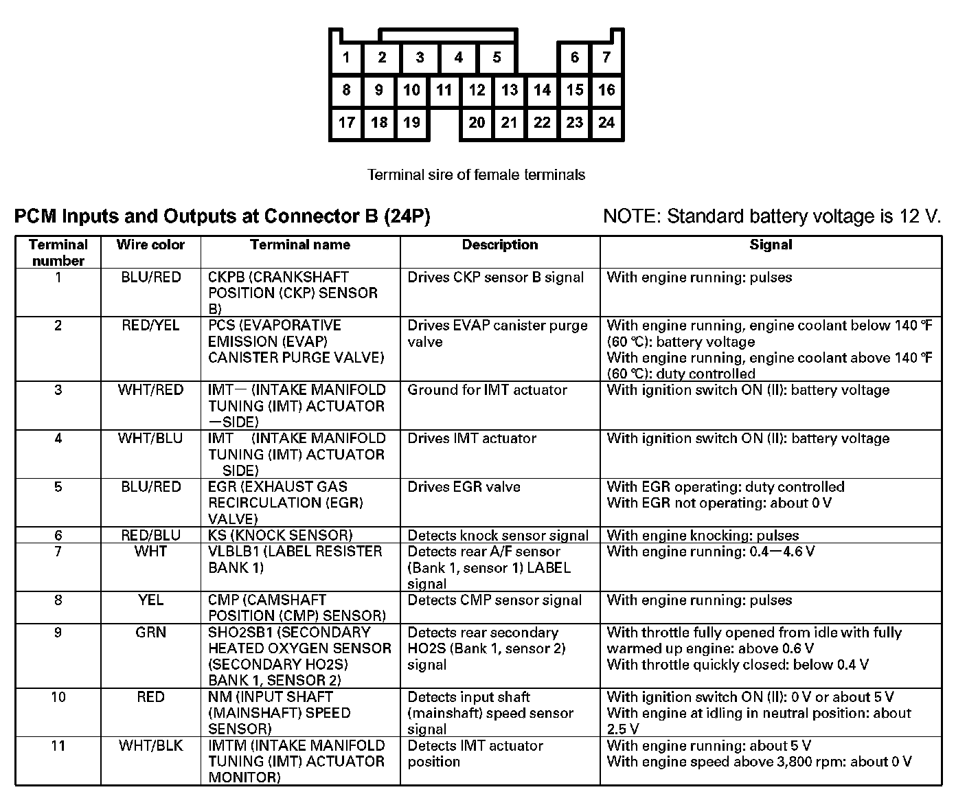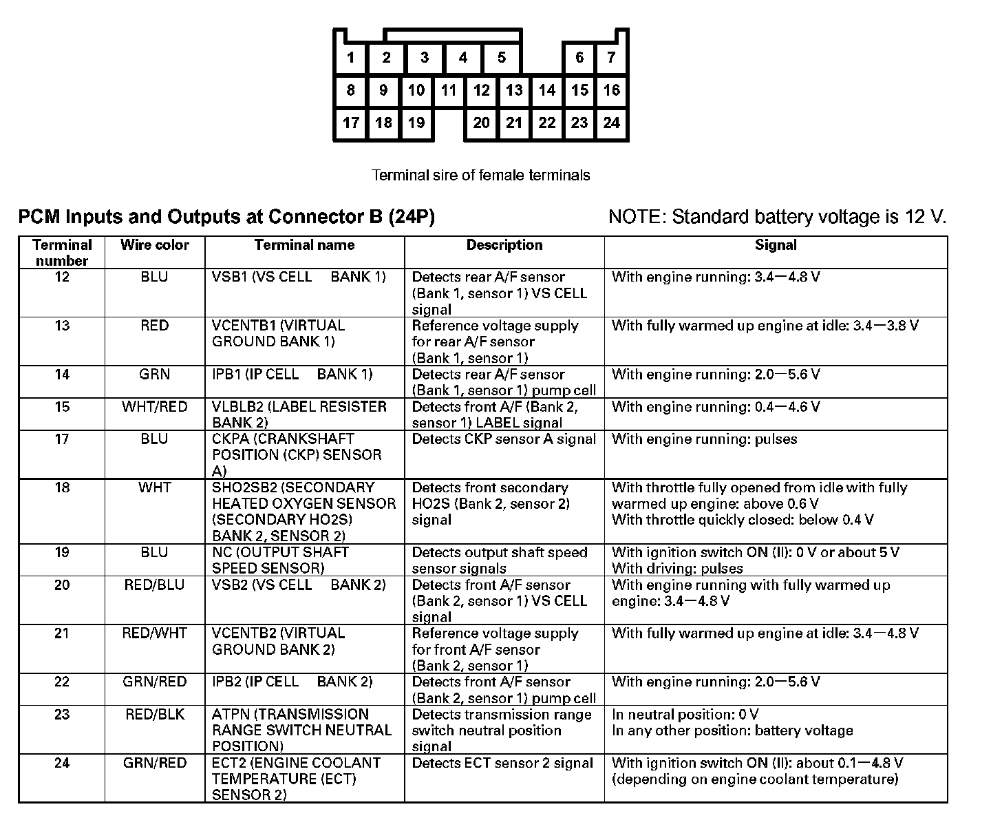 PCM Inputs And Outputs At Connector B (24P) Part 1: