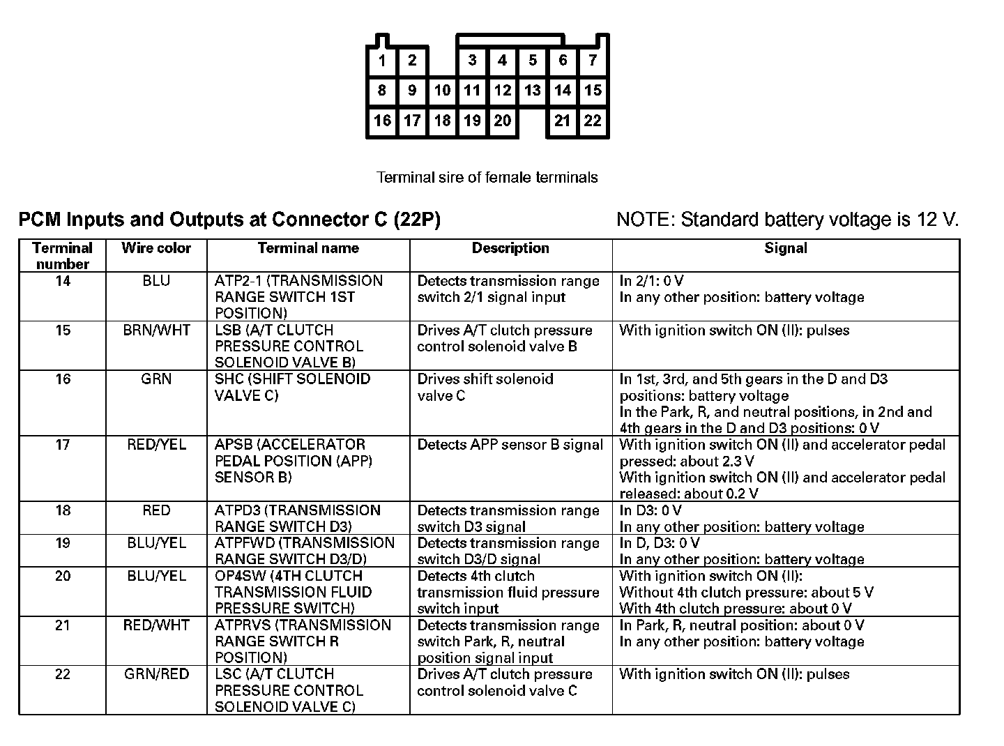 PCM Inputs And Outputs At Connector C (22P) Part 1: