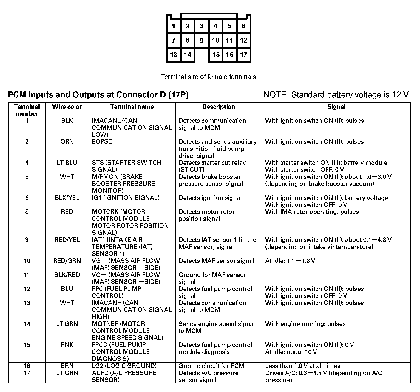 PCM Inputs And Outputs At Connector D (17P):