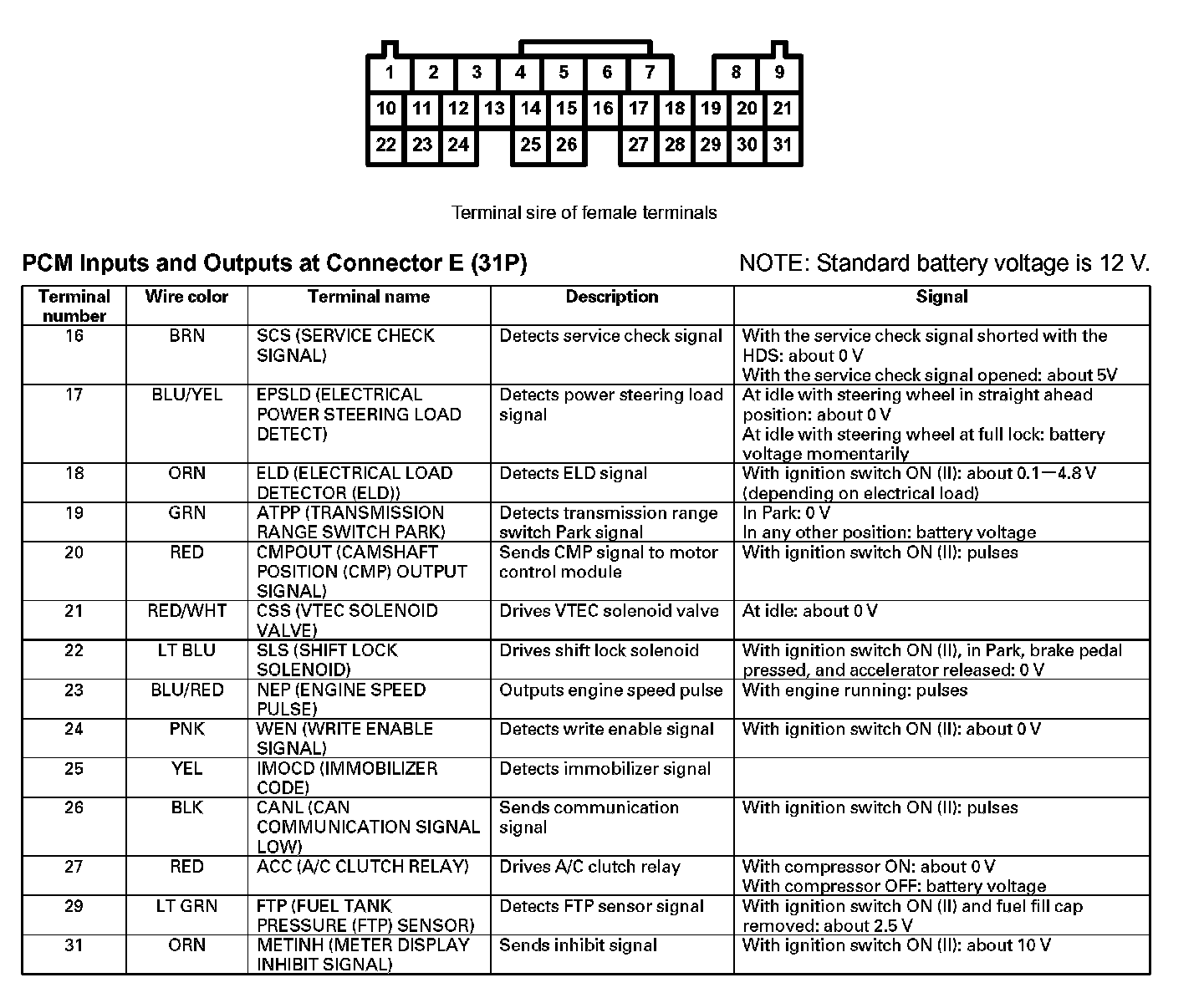 PCM Inputs And Outputs At Connector E (31P) Part 1: