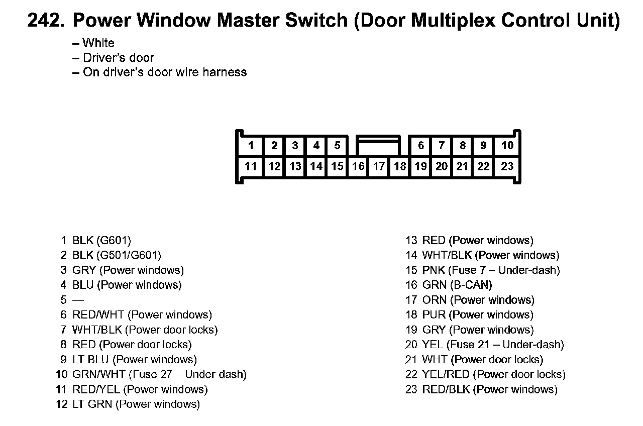 242. Power Window Master Switch (Door Multiplex Control Unit):