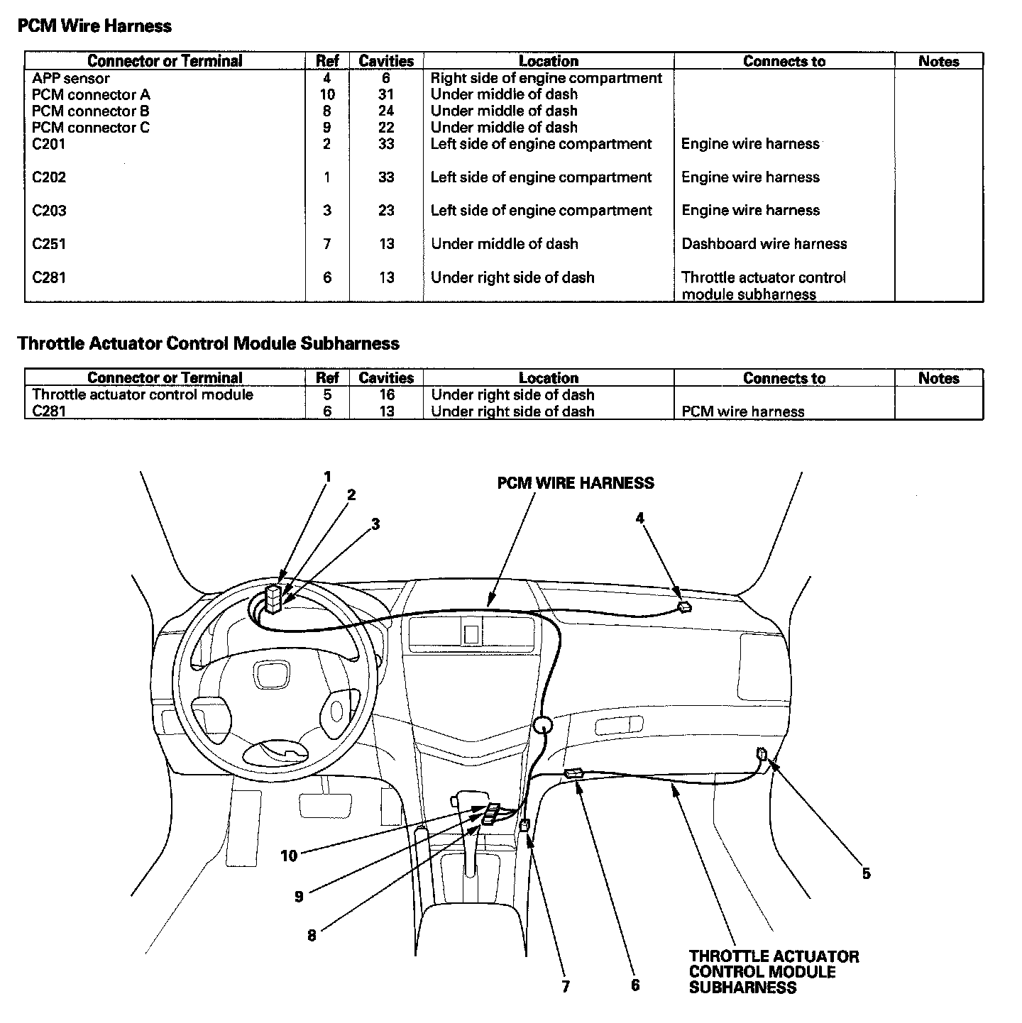 PCM Wire Harness/Throttle Actuator Control Module Sub-harness: