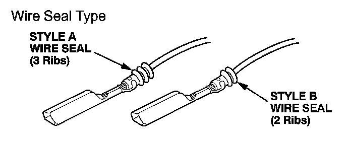 Select the proper size pigtail terminal by matching the replacement terminal part number and the wire size being repaired to the corresponding pigtail terminal part number. Then use the color (size) splice connector listed. In some instances you may also have to match the wire seal style to select the proper pigtail terminal. Pigtail terminals are available through your parts department, in quantities of 10, using normal parts ordering procedures.
